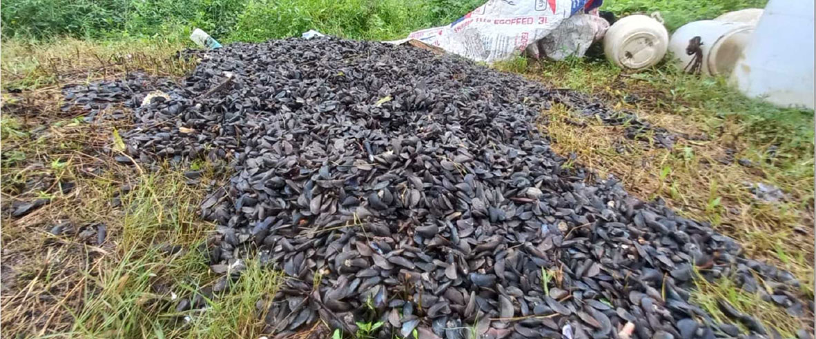 Reliable information has been collected from few shrimp farms and adjacent natural ecosystems on the presence of Black mussel Mytella strigata (Hanley, 1843) (Bivalvia; Mytilidae)